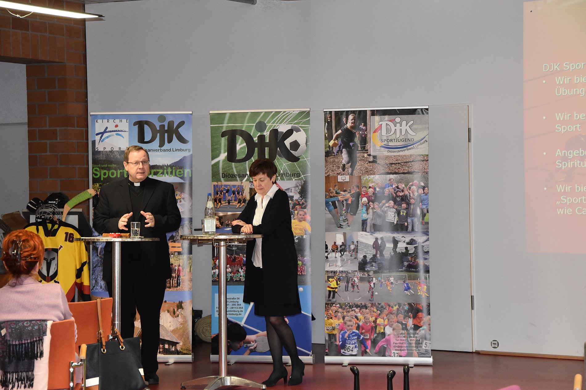In seinem Statement betonte Bischof Georg die wichtige Aufgabe, die der DJK Verband als mitgliederstärkster Verband im Bistum im Bereich von Kirche und Sport erfüllt. Er dankte ausdrücklich den Verantwortlichen in den DJK Vereine und auf Verbandsebene für ihr außerordentliches Engagement. Dabei hob er insbesondere das langjährige Wirken von Monika Kaiser und Dieter Euler hervor, die im April hierfür mit der Bistumsmedaille ausgezeichnet werden sollen. Diese Auszeichnung erhalten Ehrenamtliche, die sich in herausragender Weise engagiert haben.