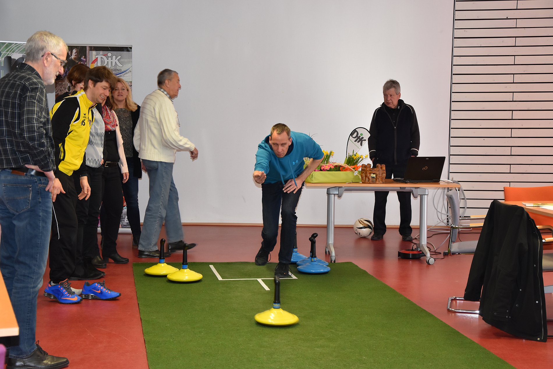 In der Mittagspause der Tagung gab es dann die Möglichkeit Sportspiele auszutesten u.a. Indoor-Bogenschießen, Cross-Boule, Unicurl oder Teppichcurling und Mini-Tischtennis.