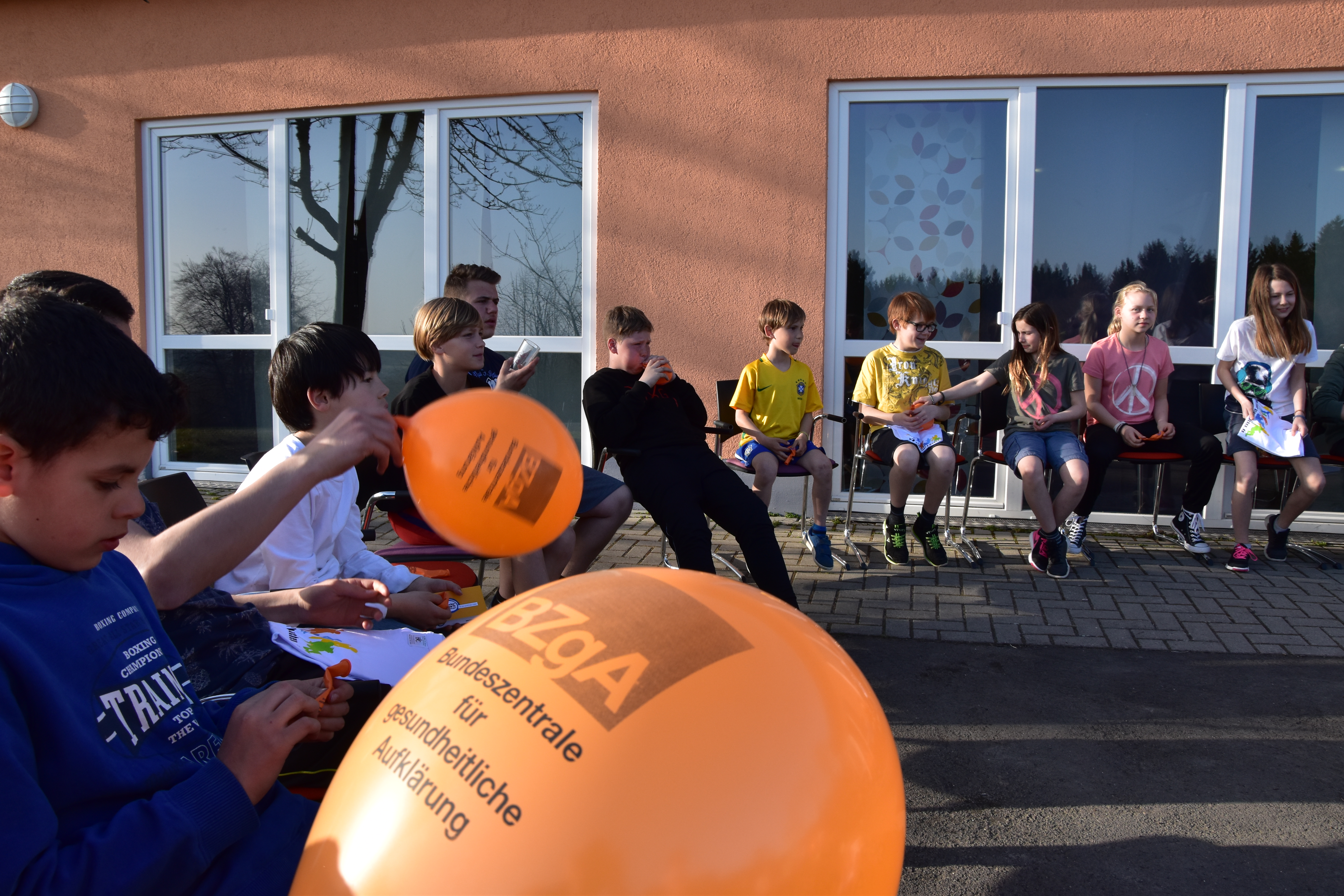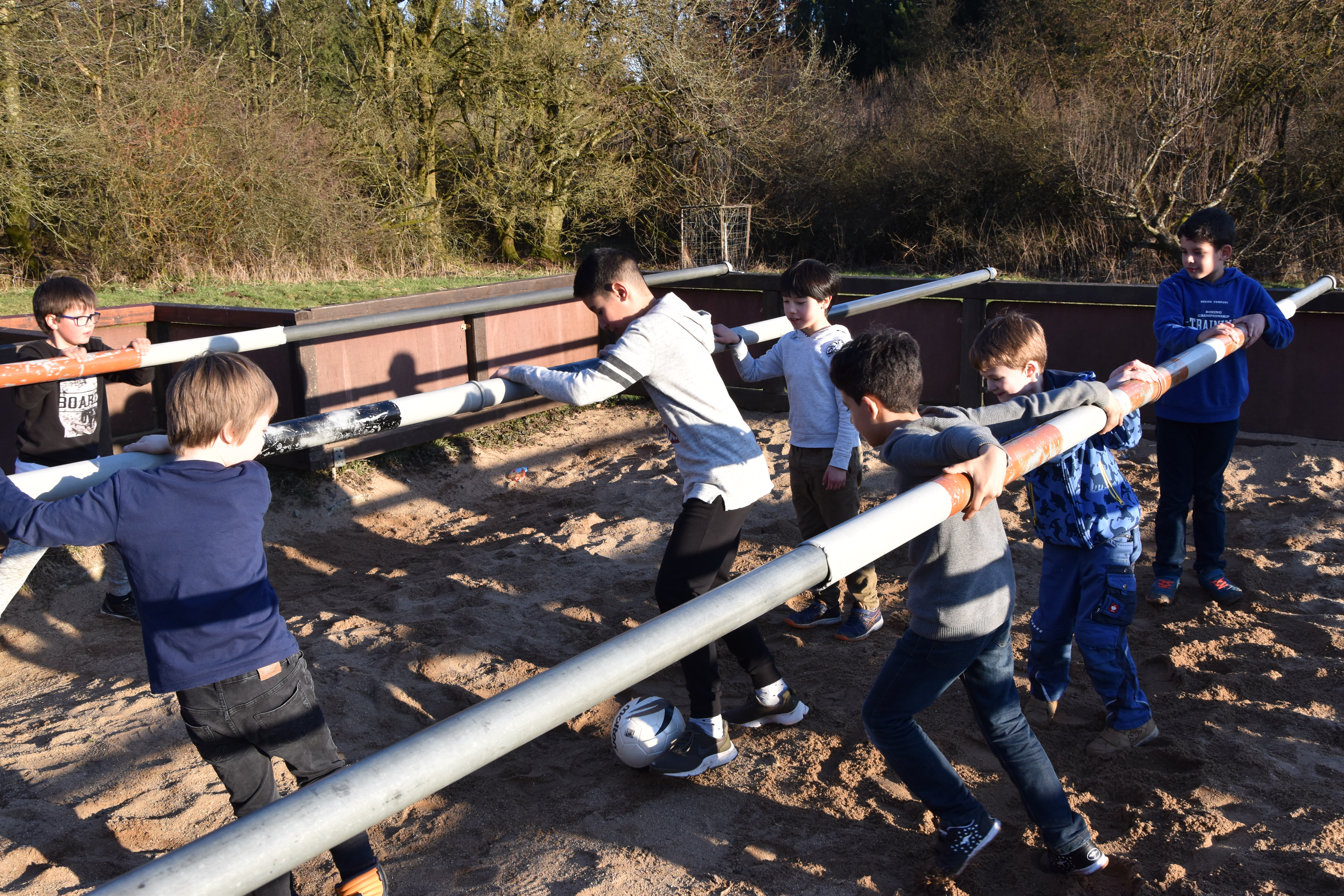 Nachmittags stand dann ein sportlicher Wettkampf unter dem Motto"Kinder stark machen" auf dem Plan. Ein Parcour unterschiedlicher Sportspiele, im Niedrigseilgarten, beim Frisbeegolf, Cross-Boule, Bogenschiessen oder Geschicklichkeitsspiele etc. war in Gruppen zu bewältigen. Die Gruppen wurden hinterher ausgezeichnet.